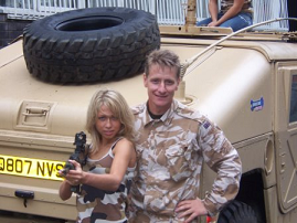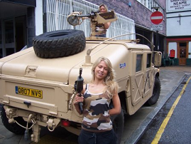 Nintendo’s New Games Consol We did this big posh tanking day for Nintendo’s new consol game Dual strike, radio control plane shooting sas woodland patrol tanks car crush all the bells and whistles for the worlds press a cracking day and lovely people full of fun up for anything. Purely on Merritt the boss of Nintendo’s daughter won the day (another horse rider again ) which seemed to please him so much myself and all my men on the day were given a special limited edition cameo game consol with the new game ect all neatly built in to a 50 cal ammo box WOW the lads couldn’t believe their luck nor could i when they asked me for a price to taxi a couple of models around London in a humve with machine guns. Im surprised the police swat team didn’t shoot us all maybe the 50cal scared them off it rained so unfortunately the bikinis didn’t stay on long but they still fell for the old shared bodily warmth chestnut which was especially nice for Nigel in the back |
