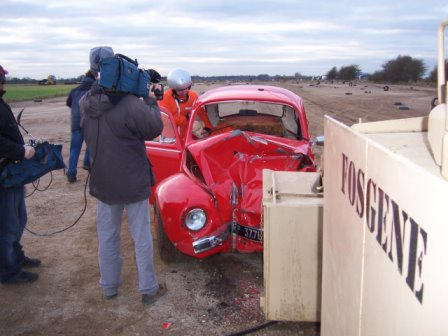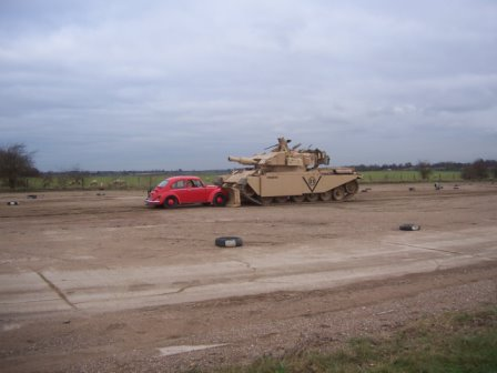 Crash Test Dummies We just did a little TV job for CRASH TEST DUMMIES a new series coming out soon. Basically they wanted to crash Volkswagen beetles in to fhosgene at different speeds the final one being 40 plus MPH a little worrying, damage is always hard to straighten on a big one and even a beetle must carry a bit of momentum at that kind of speed. I was wrong a dull thud and not even a scratch All in all a good fun day The problem came a couple of days later when i was having breakfast with my two small boys with the Telly on. They were enjoying a kids program with Two presenters Ben and Small who with clever camera work small was supposed to be 12 inches tall .I suddenly realised these were the chaps i had worked with 2 days earlier. I said to the kids come and look at the computer i have a photo or two with you dad shaking someone’s hand you may recognise .They were horrified to see that small was actually 6 foot 2 .now their not sure about Pixies, Tooth fairies, bean stalks,! Christianity, and especially Father Christmas, Don’t ring me about beetle spares i did a neutral turn on top of it after the crash sorry no picture every body was to shocked to take a photo. |