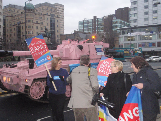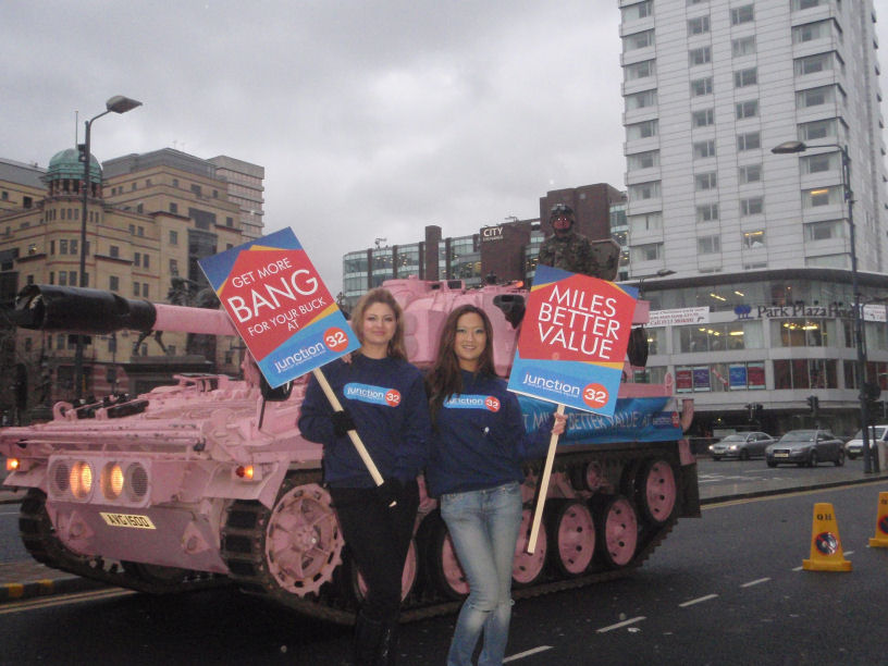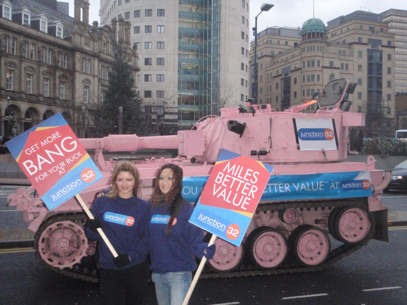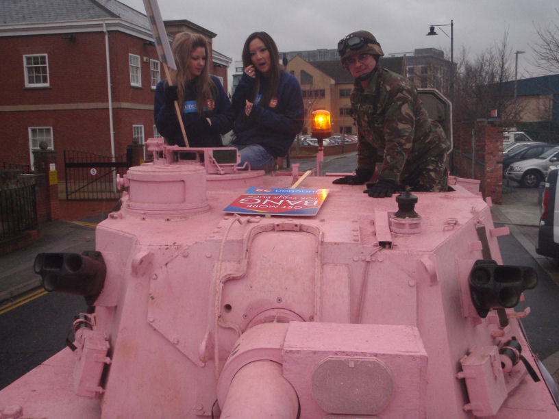 We had a call from a guy called tom, could we drive around Leeds city center in a Pink Tank with a couple of models in the turret. Didn’t take me long to say yes. Turned out we were promoting a shopping centre “whatever”, The day went very smoothly, long low loader trip to get there with a very early start, but it's got to be more fun than sleeping. We were dropped off in front of Debenhams at a rival shopping center, they weren't amused. Funniest bit was when the girls had a photo shoot with the tank in the city center and three young lads asked what was going on. I’m afraid I made up a story about the girl were going to do a quick nude shoot at the end then roar away in the tank before the police came. Big crowds gathered but the three lads made sure they were at the front. The pink tank hadn't been out for a while, the Tank limo has been steeling its thunder a bit, but she ran well all day covering over 28miles, not bad for an armoured vehicle made in the late sixties, wonder if a modern warrior could do the “bizz” as well. Click on the images below to enlarge: |
