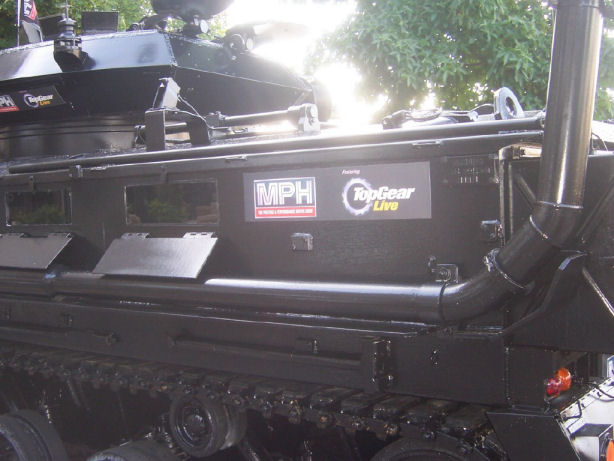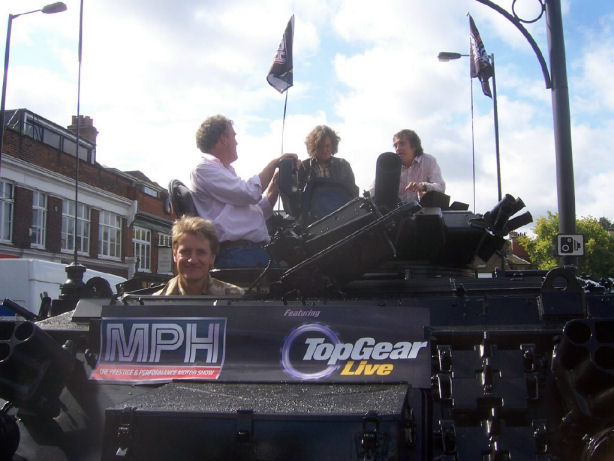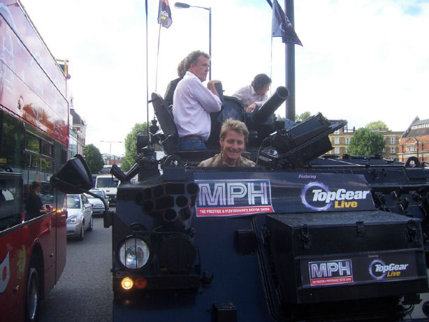 Thanks to Wayne’s world for being at the other end stopping me squashing the kerbs and Mark from Osborne’s for keeping his privates hidden under the 4 sized to small camo trousers we lent him, And of course Charlotte from top gear for having faith in my team and Tank limo, we were promised a few free tickets for the show fingers crossed, and mustn’t forget MR Plod, they did a fine job. Should i apologise for all the traffic jams caused when they closed the bridge for us, well what's a few minutes when up the street the roadwork have been going for weeks Till the next time Top Gear 100 tanks and a big smile.