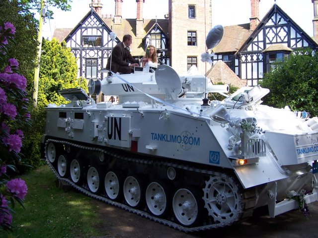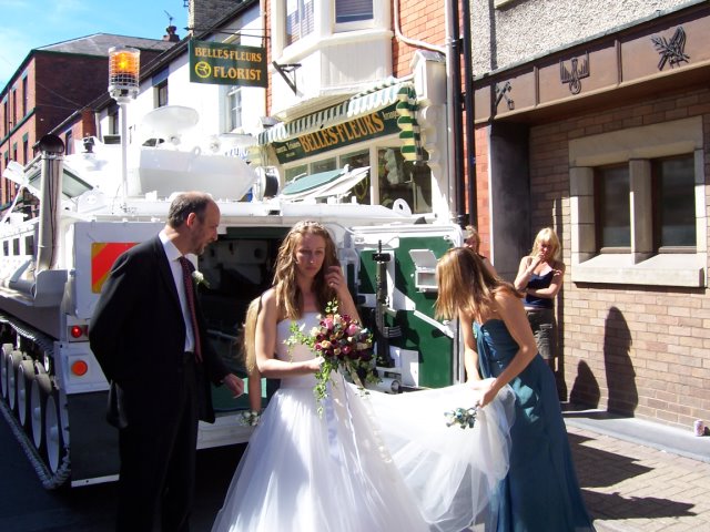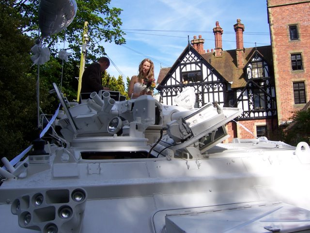 Tank Limo Hire (Wedding Day Wales) We had a Tank Limo enquiry from this Magic guy Barrington Powell actually a real magician close up stuff with pigs not rabbits. Small world really turns out we had worked together a few years previous, him wowing the crowds making small kids disappear and me bombing round a housing estate in a tank but that’s another story. This was the same bloke who made my money disappear, it wasn’t the amount it was the fact i was stumped how he did it, actually had sleepless nights about how it happened, very slick indeed. He needed a wedding doing for his friends Mat and Amy i struck a deal and with a bit of haggling i owned the trick, it was finally mine forever, Now i can make your money disappear. The Saturday came quick the skies were blue and the low loader came early, we were off to Wales KlanNgocegokk or something .A small sleepy welsh town, until we got their. To say we stopped the town was a serious understatement the corners were tight for a car, so getting a stretch Tank Limo around took a just a touch of magic and a good banks man trained by the sas every body loved us Colin said it was like liberating Belgium in the 2nd ww the streets were lined with people cheering and taking photos, the girls from the local flower shop ran out and decorated Tank Limo just cos they couldn’t resist it .The bride was stunning and Barrington really worked his magic this time. One slight hiccup was when yours truly backed over a whopping great flagstone at the reception and it cracked in half ,Luckily Barrington was handy and it shot up his sleeve or something expect it will turn up behind some beautiful girls ear at his next booking. A great test for Tank Limo and its crew fun was had by all , the groom even wore his granddads Demob suit If you want a wedding to remember ring us and if you need the best close up magician I’ve ever seen call Barrington Powell 07968 533164 a fellow of infinite jest. |