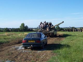 Wickhill Crush a Car Day A friendly chap called Barry rang about doing a 30 person afternoon for his company Wickhill mostly chaps so stood a reasonable chance of having a chap do the car crush i thought .It turned out that way but only just one of the girls was very near not sure if it was driver skill or the fact that she was a bit of a stunner as Lewis the paramedic remarked .I replied that’s the boss's wife Woops said Lewis ill behave. They did plane shooting and damage was pretty high good shooting generally all round with one exceptional shot, said he hadn’t handled a gun before but i found that hard to believe He looked straight of a bond movie. We also had the 18th century chaps up with muskets and mortar’s and every body finished with their eyebrows intact yet again i don’t know how we do it. Take a look at the car crush movie if you want to see a man having fun.